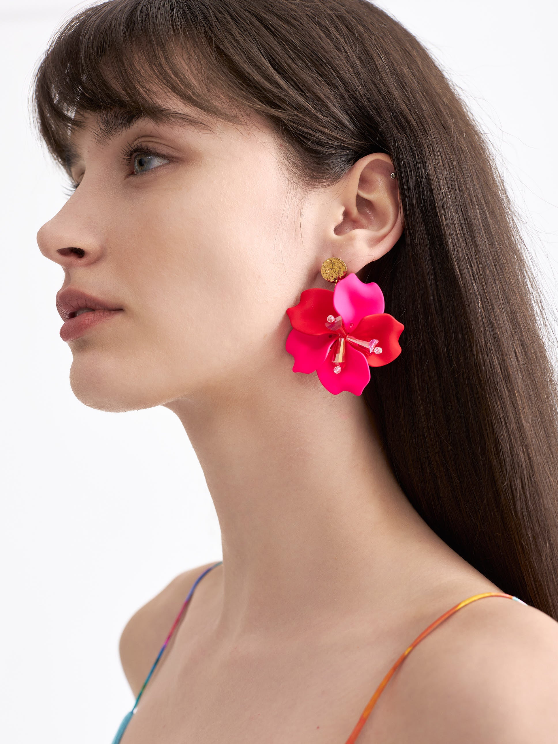 The Floral Harmony Earring is a handcrafted, one-of-a-kind piece that blends modern elegance with artistic charm. Made from stainless steel chain, adorned with colorful flower petals, beads and other elements, this unique accessory adds a playful yet sophisticated touch to any outfit.