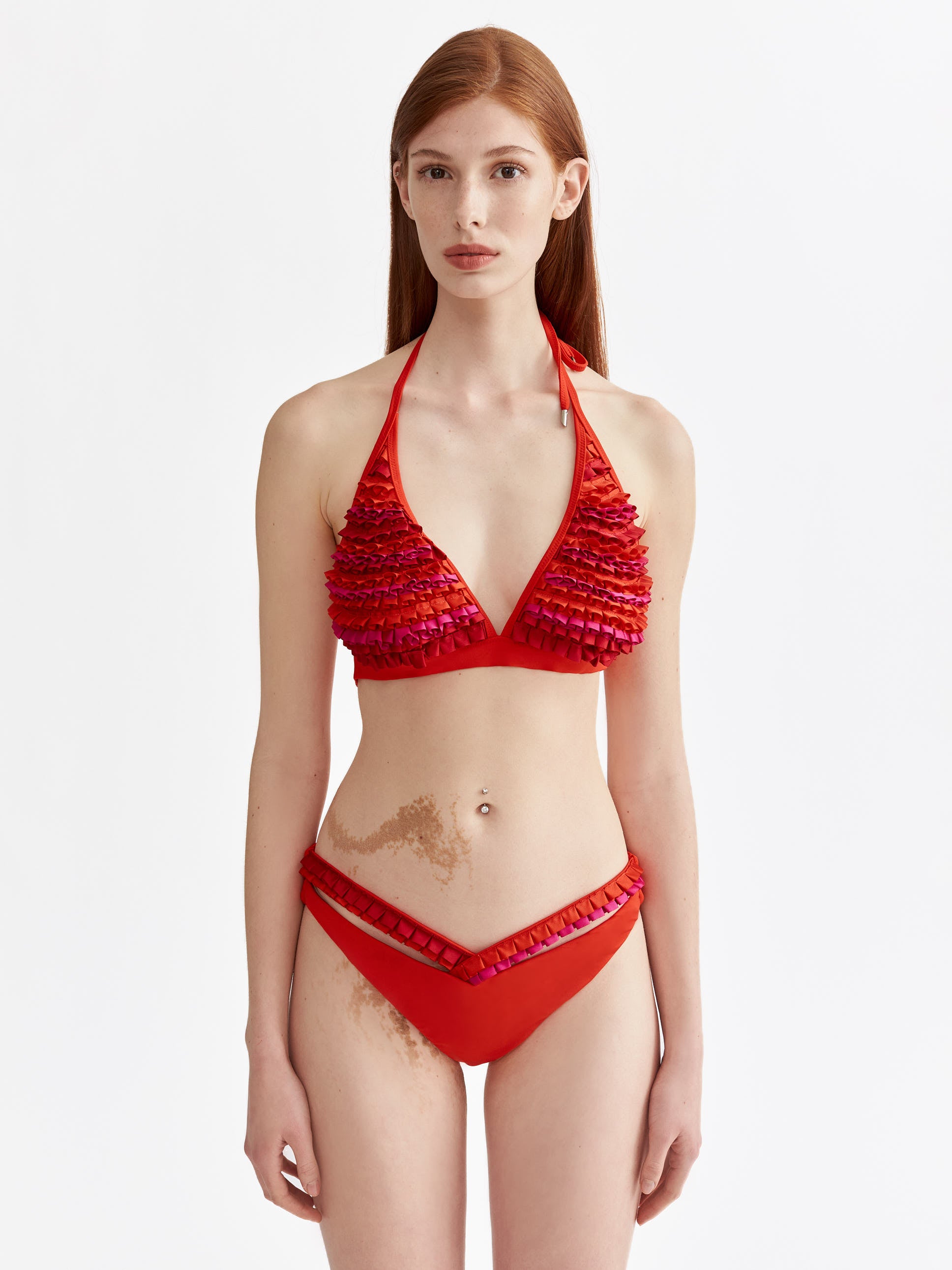 Egyszerű szabás tökéletesítve. Klasszikus Signature Triangle bikinink visszafogott eleganciát és sikket kínálnak időtlen háromszög alakban. A Signature színes, kézzel szalagos részletekkel díszített, állítható megköthető bikinifelső bárki számára tökéletes illeszkedést biztosít.