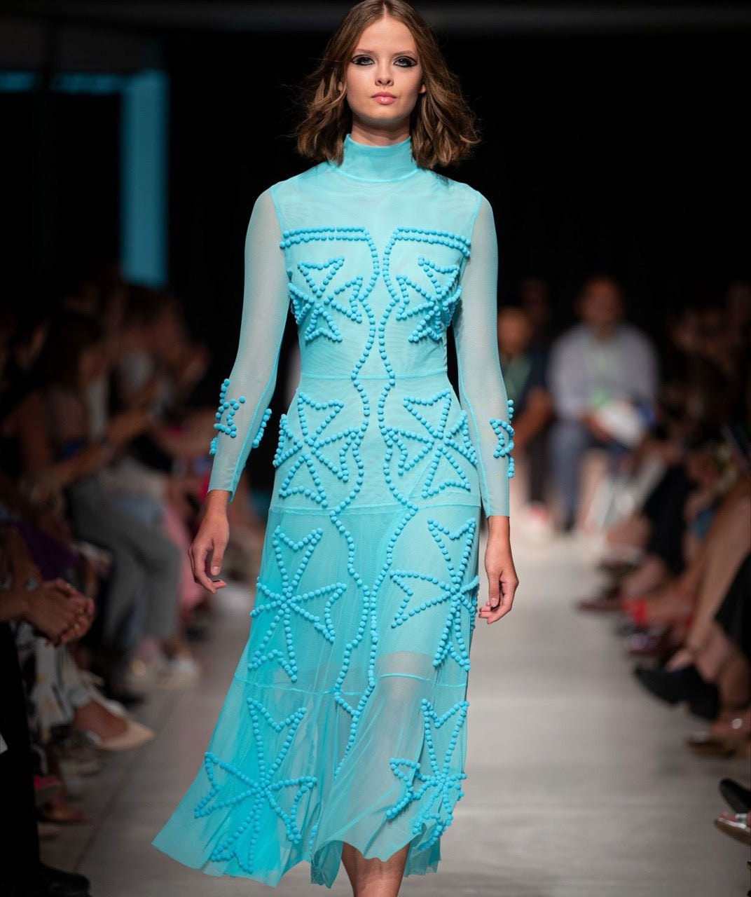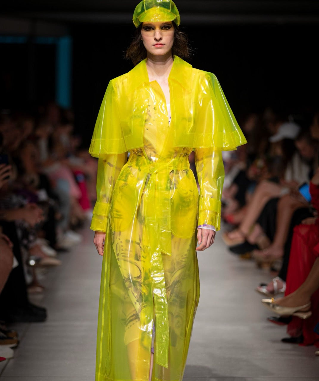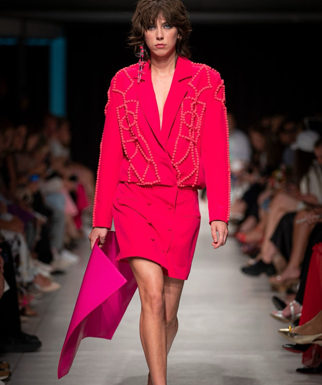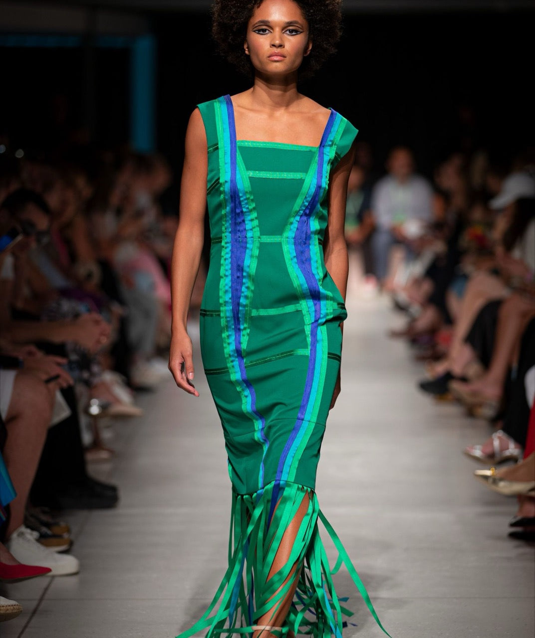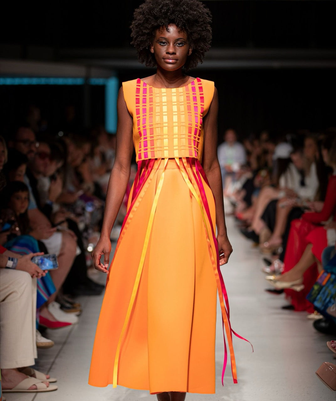 VIKTORIAVARGA SS24 is a vibrant and joyful collection inspired by Portugal’s street art, traditional tiles, and mesmerizing blue skies. The collection embodies the country’s rich cultural heritage, blending intricate azulejo patterns with bold colors and dynamic forms. Viktoria Varga’s signature design elements—ribbons, pom-poms, and striking color combinations—are elevated with new silhouettes and artistic craftsmanship. Versatile A-line and straight-cut pieces range from dresses to jumpsuits, light coats, and eveningwear, crafted primarily from silk with touches of neoprene, cotton, tulle, and wool. Standout details include square necklines, exaggerated ribbon accents, and hand-painted 3D ornaments, all contributing to a sense of harmony and playfulness. The collection’s clean, architectural lines and vibrant color palette capture the effortless joy of summer.