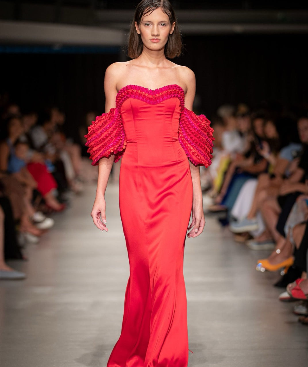 Inspired by the enchanting essence of Spain, the SS25 collection captures the Mediterranean spirit and the rich cultural tapestry of Andalusia. Drawing from the architectural beauty of Marbella, Ronda, Sevilla, and Granada, it reflects the harmonious coexistence of Moorish, Jewish, and Christian influences. Elements of Mudéjar architecture, domes, towers, and intricate wrought iron details appear throughout the designs. The collection also embraces the passion of Flamenco, the warmth of Spanish beaches, and the vibrancy of sunlit landscapes. A rich color palette — fiery reds and pinks, sunlit oranges and yellows, serene blues, and lush greens — brings the inspiration to life. Flowing silhouettes, intricate layers, and luxurious fabrics such as silk, organza, and organic cotton enhance each piece. The result is a fusion of history and modernity, creating wearable art pieces that are both timeless and elegant.